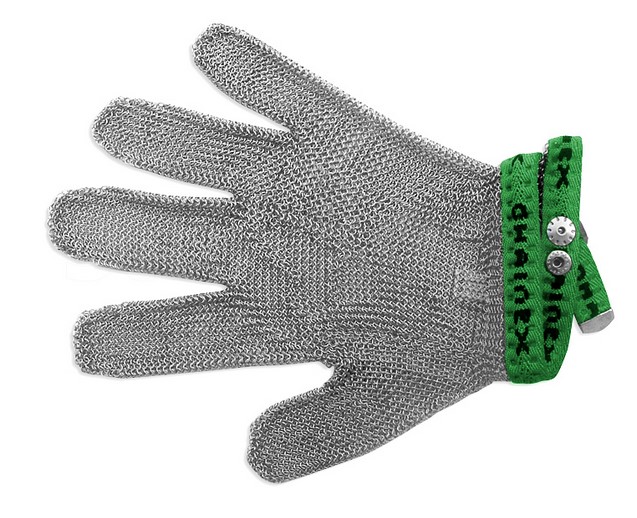 Сталеві кольчужні рукавички слугують для запобігання рук під час ріжучих операцій, де використовуються різні розкрійні машини. Виконані з нержавіючої сталі. Рукавичка є універсальною, підходить і на праву і на ліву руку (достатньо вивернути).