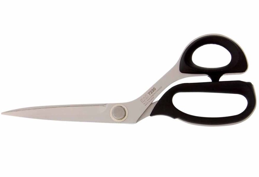 Професійні кравецькі ножиці. Спеціальна геометрія заточування лез дозволяє без труднощів працювати як з важкими так і з легкими тканинами.