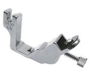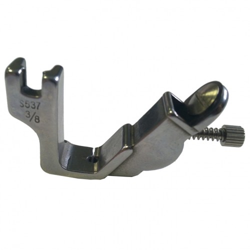 Лапка для пришивання гумки (тасьми). Натяг подачі регулюється гвинтом. Доступні розміри ширини тасьми: 6,4 мм і 8 мм