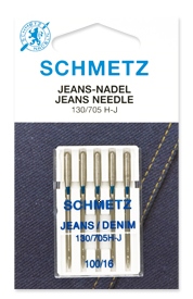 Среднее шарообразное острие легко проникает сквозь прочные толстые материалы, исключая их повреждение. Усиленный стержень предотвращает отклонение иглы и снижает риск поломки иглы и пропуска стежков. Применяется для денима (джинсовая ткань) и похожих прочных тканей.